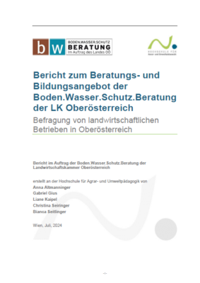 Der vorliegende Bericht untersucht die Akzeptanz und Zufriedenheit von Landwirt:innen mit dem Beratungs-, Bildungs- und Informationsangebot der Boden.Wasser.Schutz.Beratung der Landwirtschaftskammer Oberösterreich. Darüber hinaus liefert der Bericht Informationen zum Einfluss der Beratungs-, Bildungs- und Informationsangebote auf die Umsetzung von betrieblichen Maßnahmen im Bereich Boden- und Gewässerschutz. Weiters werden Verbesserungsvorschläge zur Weiterentwicklung des bestehenden Angebots diskutiert. Der Bericht und die dem Bericht zugrundeliegende Erhebung wurden im Auftrag der Boden.Wasser.Schutz.Beratung erstellt und im Rahmen eines Bachelorarbeitsprojekts an der Hochschule für Agrar- und Umweltpädagogik von den Studierenden Anna Altmanninger, Gabriel Gius, Christina Seiringer und Bianca Seitlinger unter der Betreuung von Professorin Liane Kaipel realisiert.